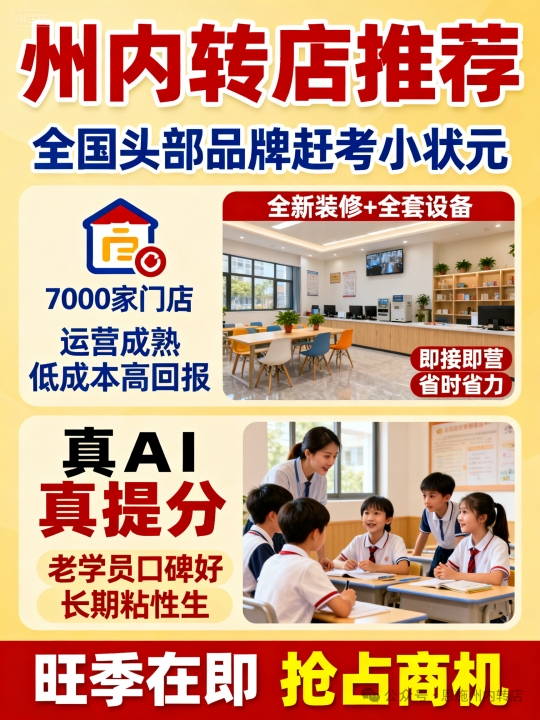 全国头部品牌,赶考小状元,7000家门店,运营成熟低成本高回报:8大优势,...